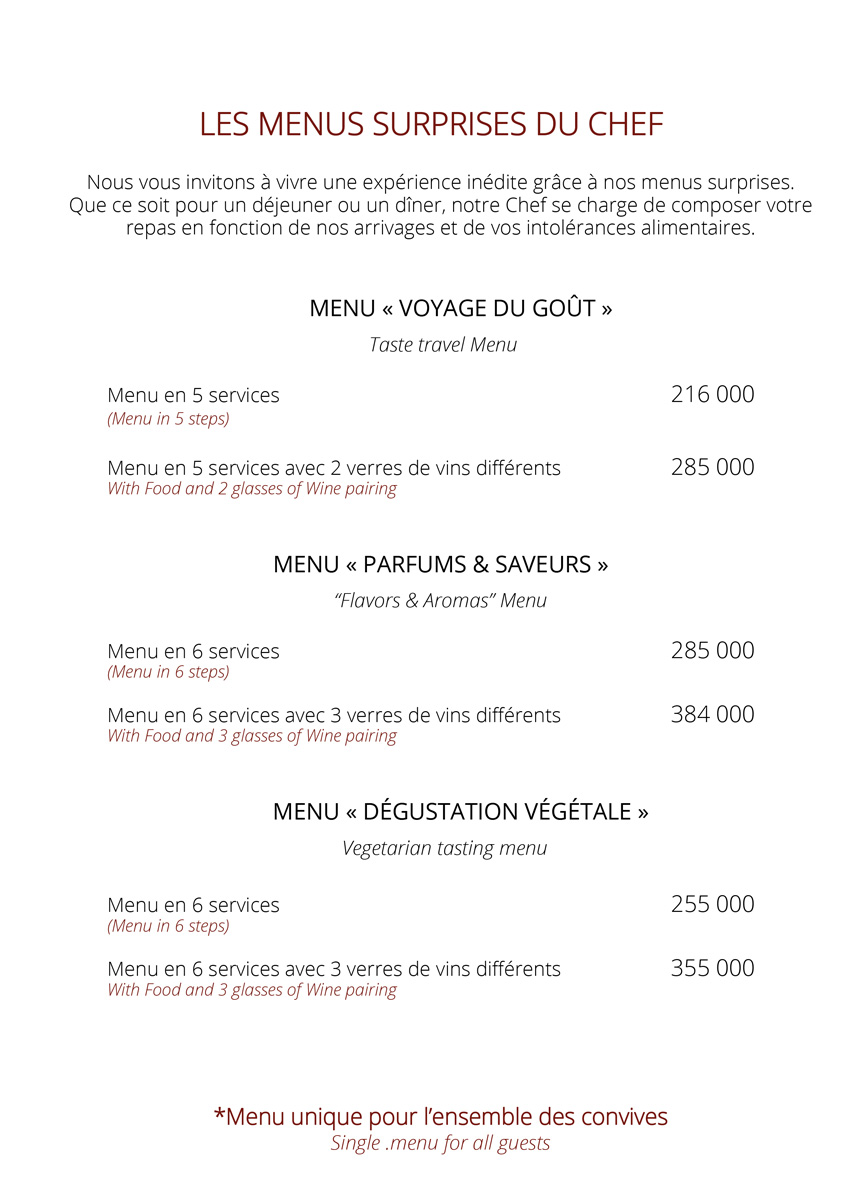 Mahakasika ny fanofana manokana ny efitrano fisakafoana na ny tolotra momba ny fahandroan-tsakafo (prestations Traiteurs) dia arakaraka ny zavatra ilain’ny mpanjifa ny sarany.